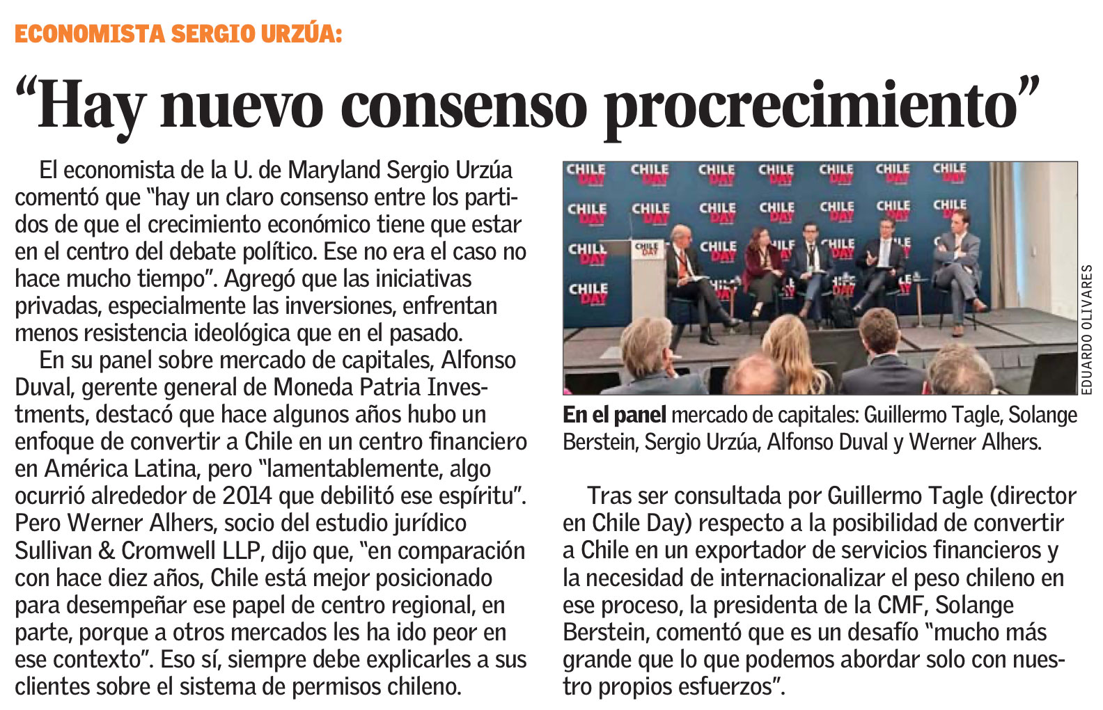 El economista de la U. de Maryland Sergio Urzúa comentó que “hay un claro consenso entre los partidos de que el crecimiento económico tiene que estar en el centro del debate político. Ese no era el caso no hace mucho tiempo”. Agregó que las iniciativas privadas, especialmente las inversiones, enfrentan menos resistencia ideológica que en el pasado.